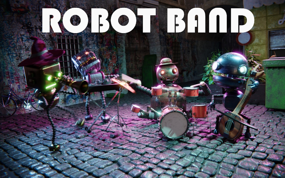 If you are tired of playing games that are stressful or too hard, then take your time and relax with Robot Band. Listen to this band of robots playing its techno music in Trastevere, the heart of Rome. Move the sliders to change colors, music speed, daytime and so on and touch the robots to make them play.