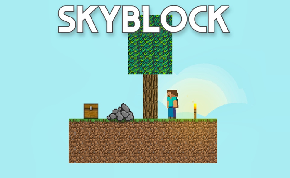 Minecraft - SkyBlock Description Skyblock is a popular challenge, where the player starts the game in a small island in the void, including a tree and often a chest, which contains items you couldn't get without it. WASD or arrows Mouse or Touch